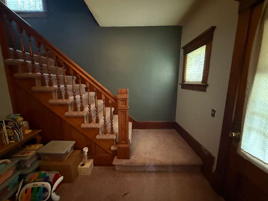 From the moment you enter, you’ll appreciate the home’s well-preserved vintage craftsmanship. Thick baseboards and trim with decorative door headers, solid wood multi-panel doors with antique knobs, and a stunning staircase with thick newel post and decorative spindles highlight the home’s rich history. The dining room and living room are separated by grand round columns, and a charming bump-out nook with large windows floods both levels with natural light. A large built-in hutch with glass doors, drawers, and storage connects the kitchen and dining room, adding both function and beauty.