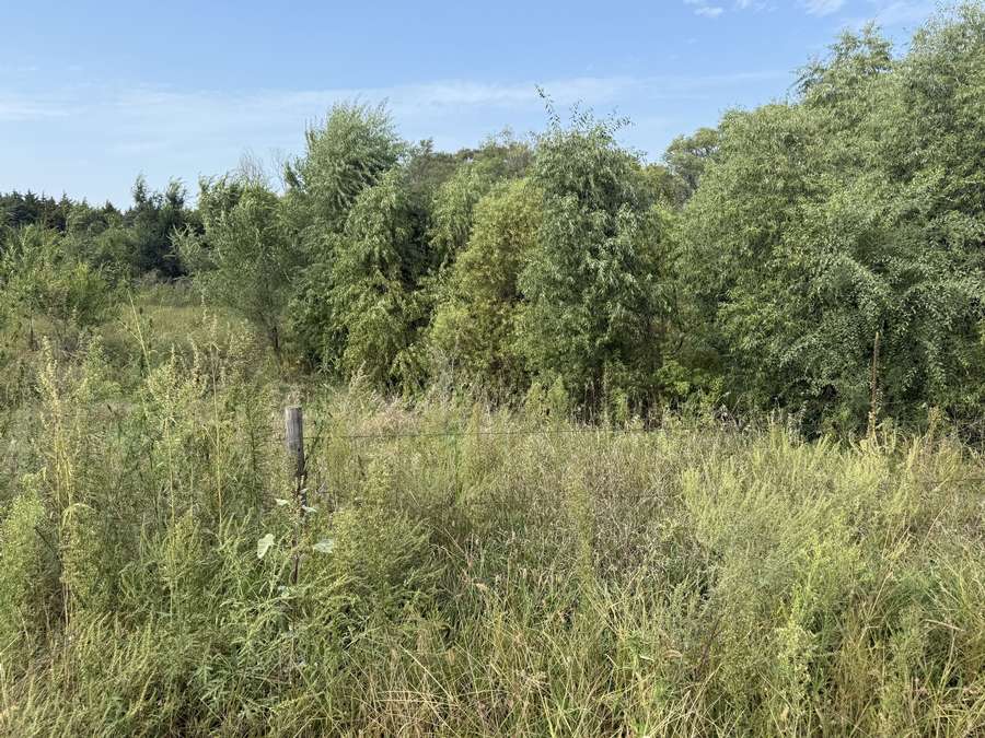 Timbered areas surrounding the pond and mature hedge trees lining the north fence create a natural food plot and travel corridor, offering solid hunting appeal for deer and other wildlife.