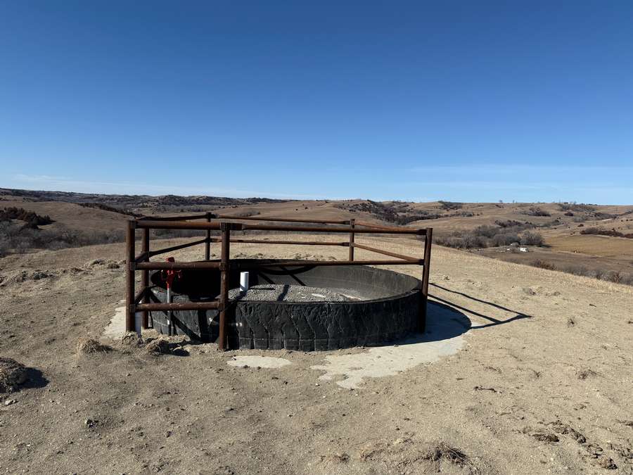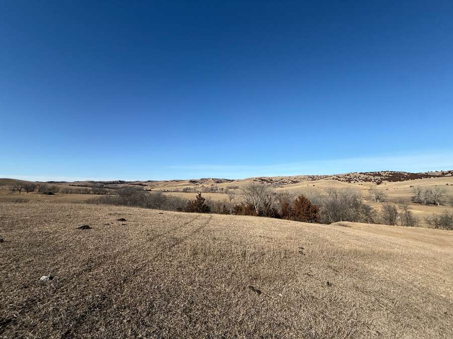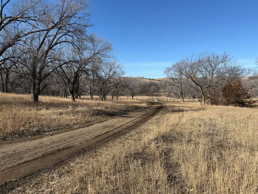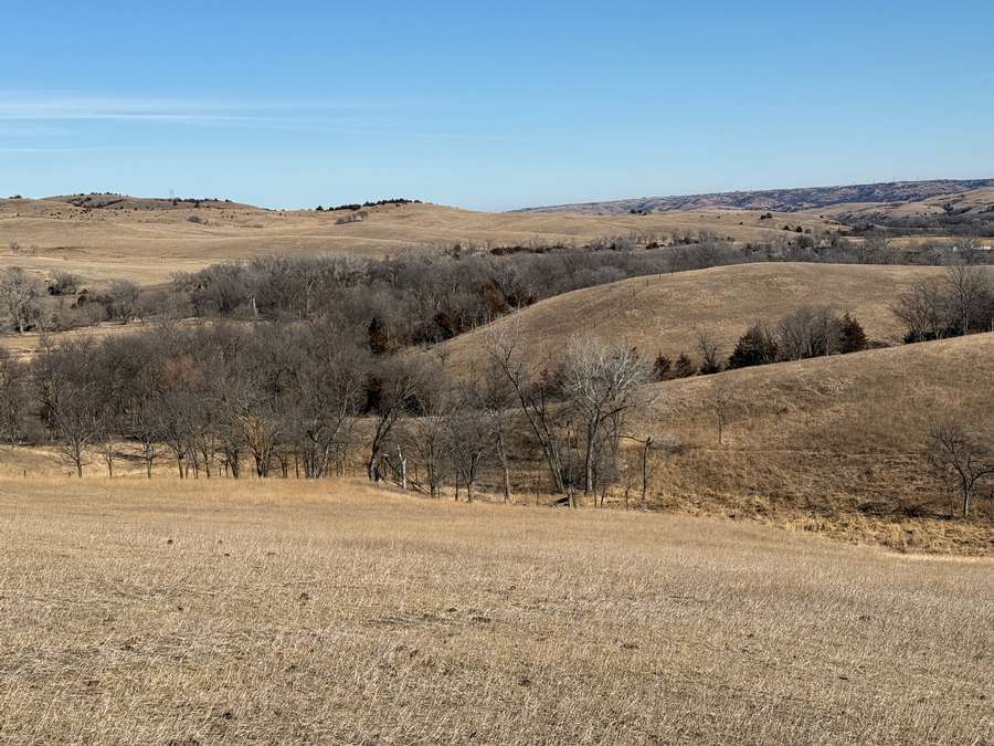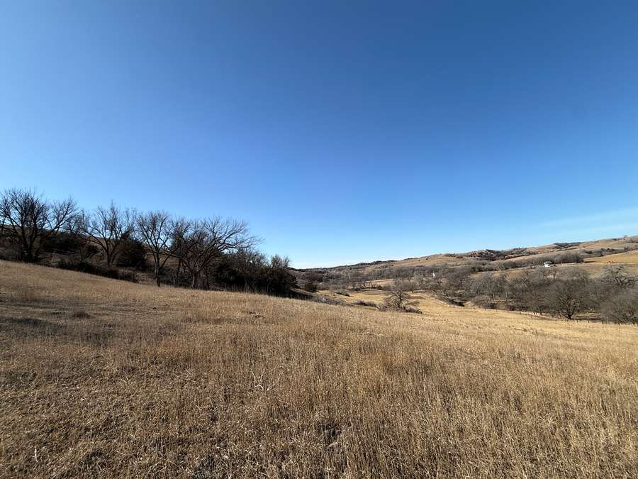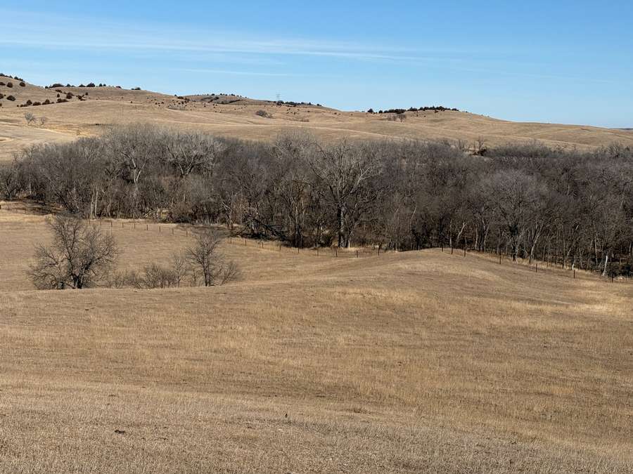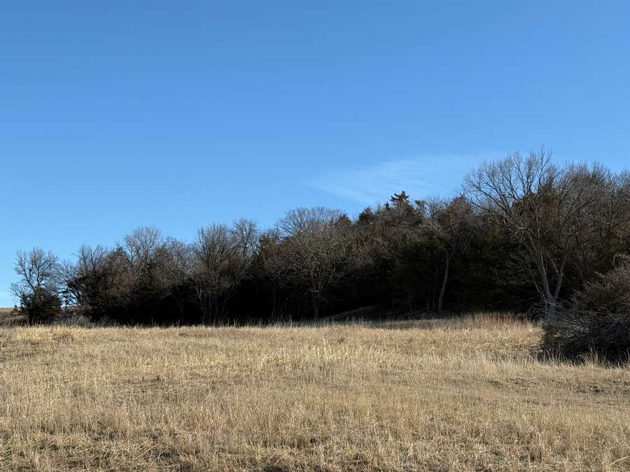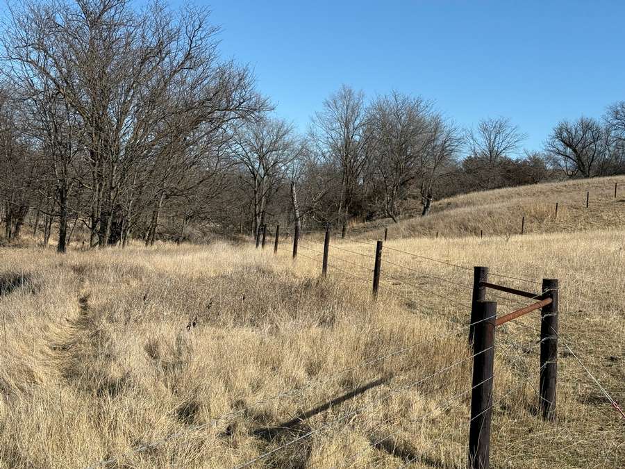 In addition to its recreational appeal, the property includes 70.6± acres of cropland currently in hay production along with productive pasture. The land is cross-fenced into two paddocks with like-new fencing. Two recently installed tire tanks (2025) and a plastic stock tank supplied by rural water provide reliable water access. Recent cedar tree removal has improved grazing efficiency and overall usability.
