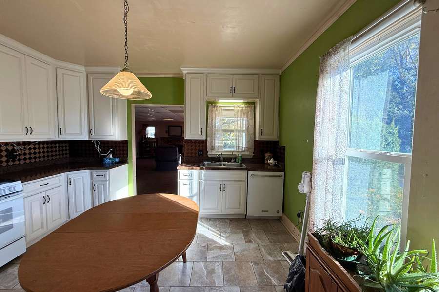 Step onto the welcoming front porch and take in the sunrise before entering a wonderfully sized living room with a cozy addition. A charming insert fireplace keeps the space warm and inviting year-round. The updated eat-in kitchen offers generous cabinet space, an under-stair pantry, and plenty of room for everyday dining.