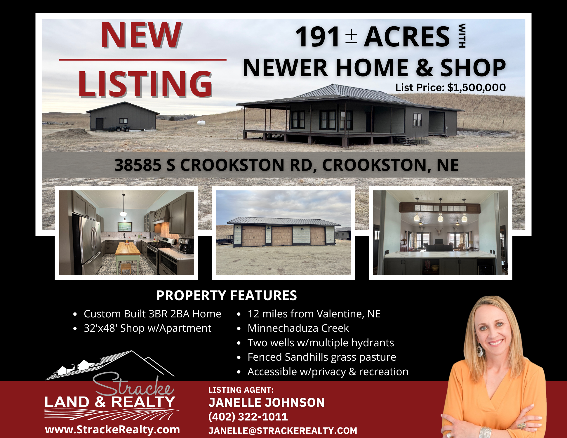 A rare opportunity to own Sandhills pasture with live water, recently completed 3 bedroom/2 bath home, and shop with apartment.