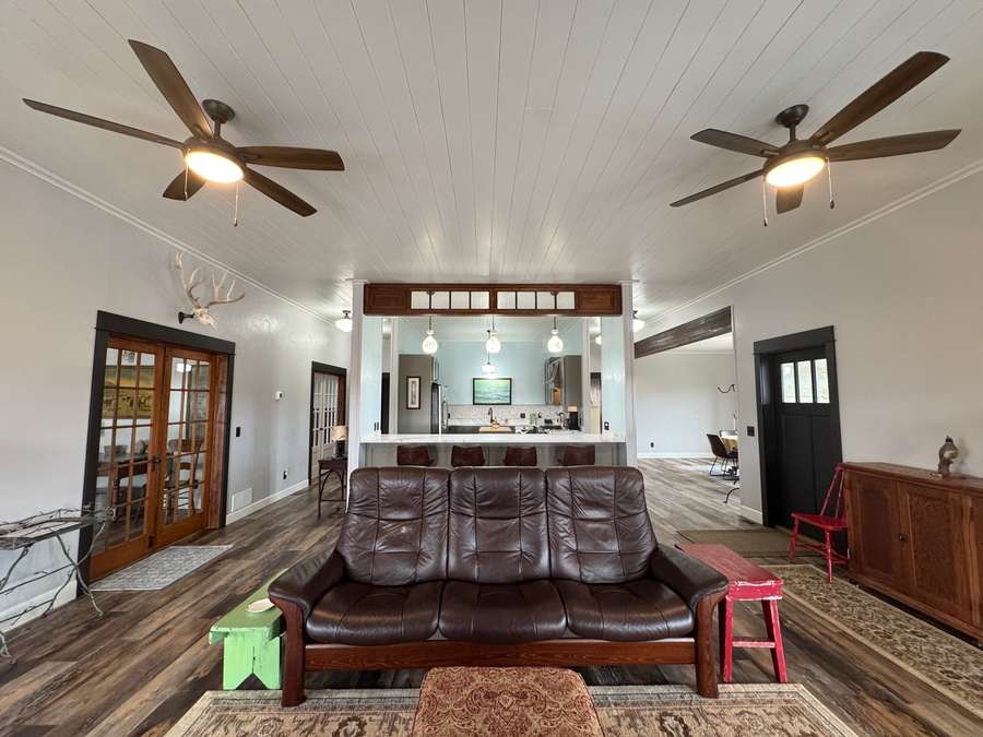 The improvements make this offering truly stand out. A recently completed, custom-built 2,592 sq.ft. home showcases rough-cut Douglas fir, creating a warm, inviting atmosphere that complements the surrounding landscape. A 32' x 48' shop adds incredible versatility, complete with three overhead doors and an apartment featuring a comfortable living area, bathroom, and bonus room—perfect for guests, rental income, or just additional space. The framework for a barn will remain along with the materials to finish.