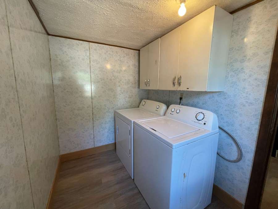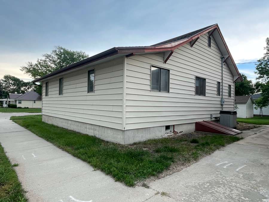 Situated on a spacious L-shaped corner lot, this home welcomes you with a front deck and ramped entrance for easy access. Inside, you'll find fresh updates throughout including flooring, paint, and light fixtures. All finished rooms are on the primary level for convenient living. The backyard extends to the alley behind the garage, offering extra green space and additional parking if you need.