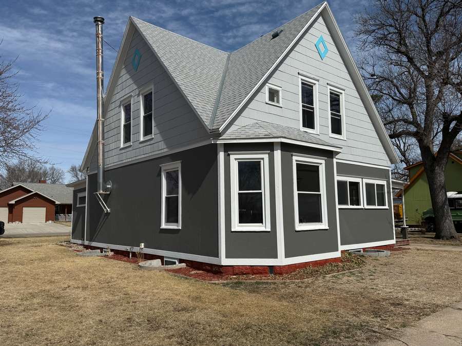Step into timeless character blended with thoughtful updates in this one-of-a-kind 5 bedroom, 2.5 bathroom home. With its eye-catching design featuring four distinct peaked rooflines and aqua accents, this property offers outstanding curb appeal.
