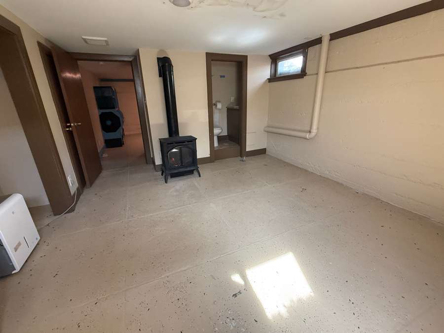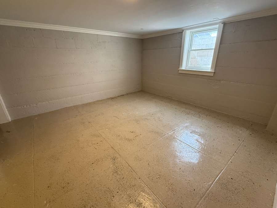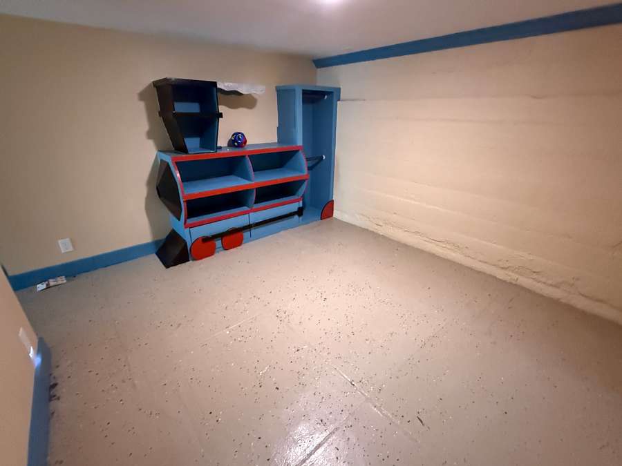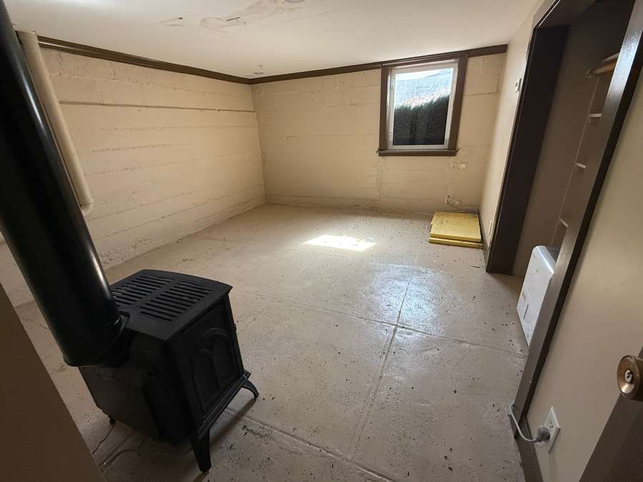 The basement offers additional living space with three bedrooms with egress windows, a small family room/play area, and a half bath. With painted cinder block walls and finished concrete floors, this level offers a functional setup with flexibility for a variety of uses.