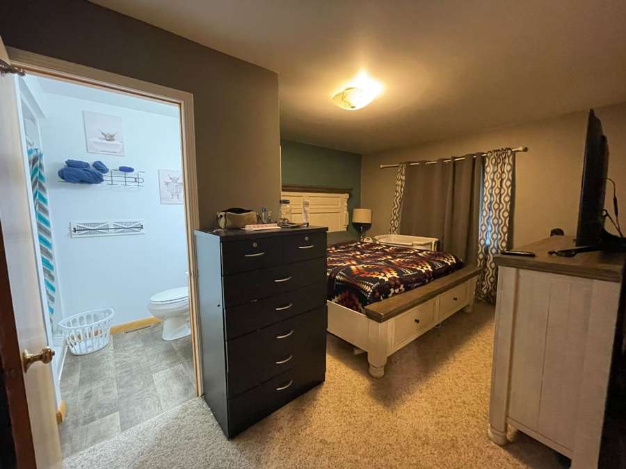 The private bedroom wing of the home includes a hallway closet that houses the HVAC system, an impressively large main bathroom with great storage, and a comfortable second bedroom that easily fits a full-size bed with room to spare. The primary suite is a true retreat, featuring his and her closets, a king-size layout, and an en suite bathroom with a step-in shower.